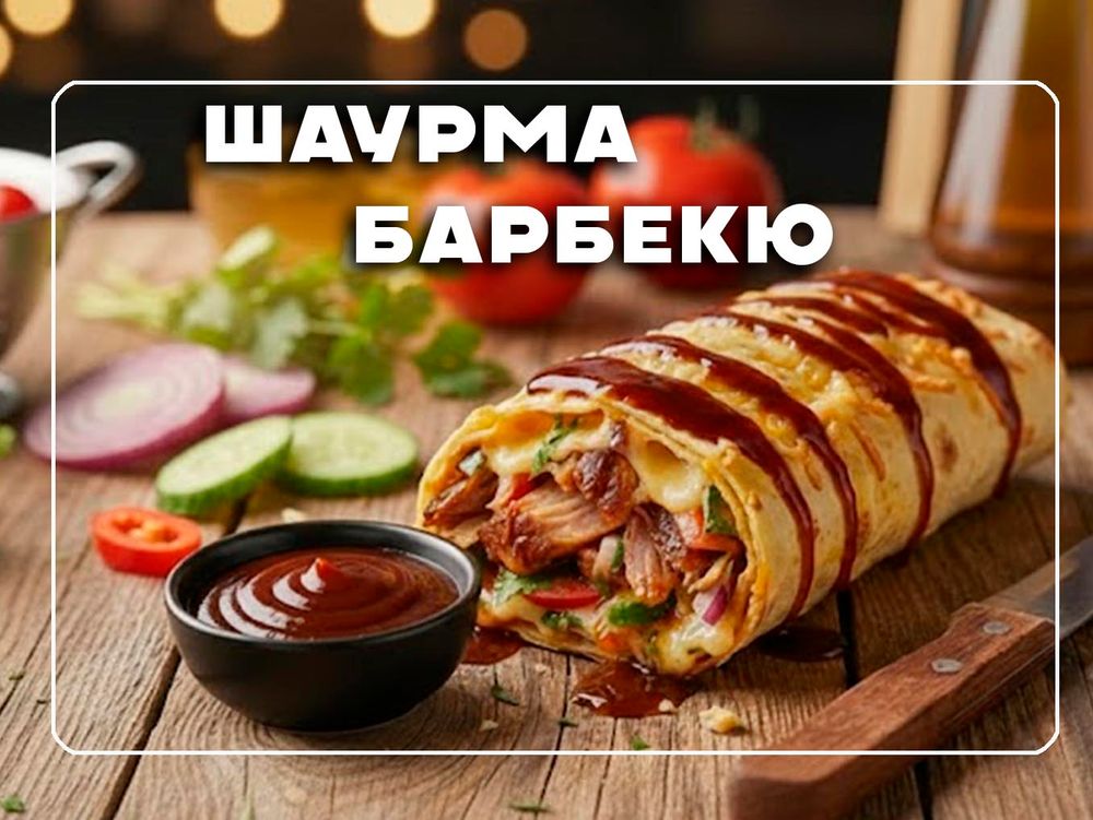 Курица гриль, лаваш, капуста, томат, маринованный огурец, соус чесночный, соус барбекю